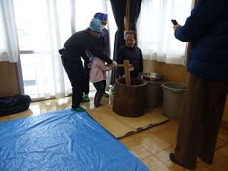 臼ときねをひたすためのたっぷりのお湯をわかしていただきありがとうございます!