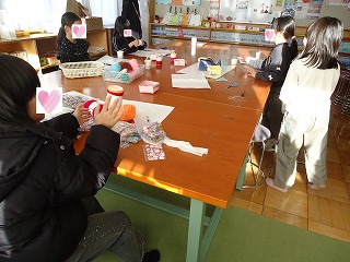 参加した1年生は上級生のお兄さんお姉さんからプラ板のプレゼントをもらいました。